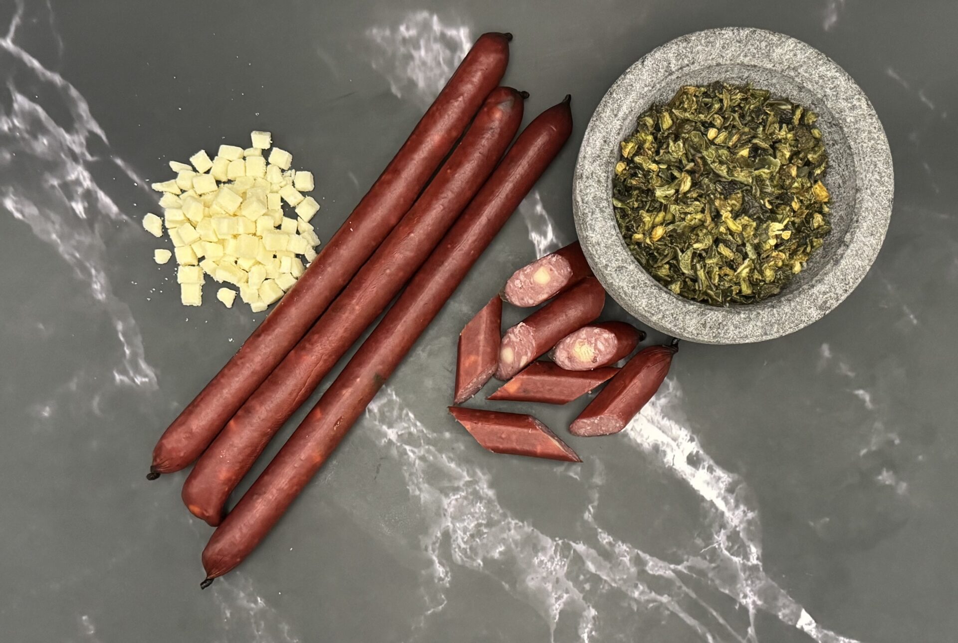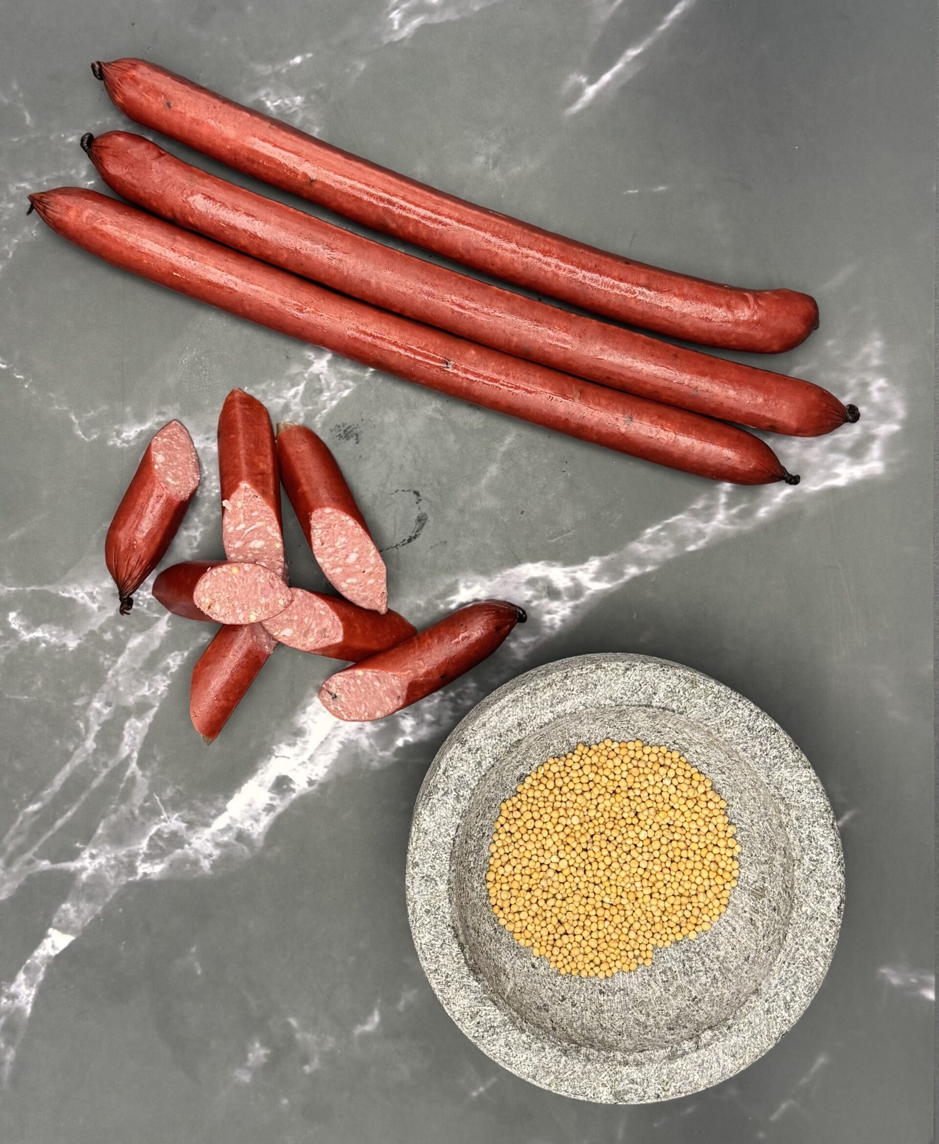 Our beef and pork snack sticks are the perfect savory snack for any time of day. Made from high-quality, locally sourced beef and pork, these snack sticks are seasoned with a flavorful blend of spices and slow smoked to create a rich, smoky taste in every bite. They’re fully cooked and ready to enjoy, making them a convenient option for lunch boxes, road trips, hunting trips, or a quick protein snack.